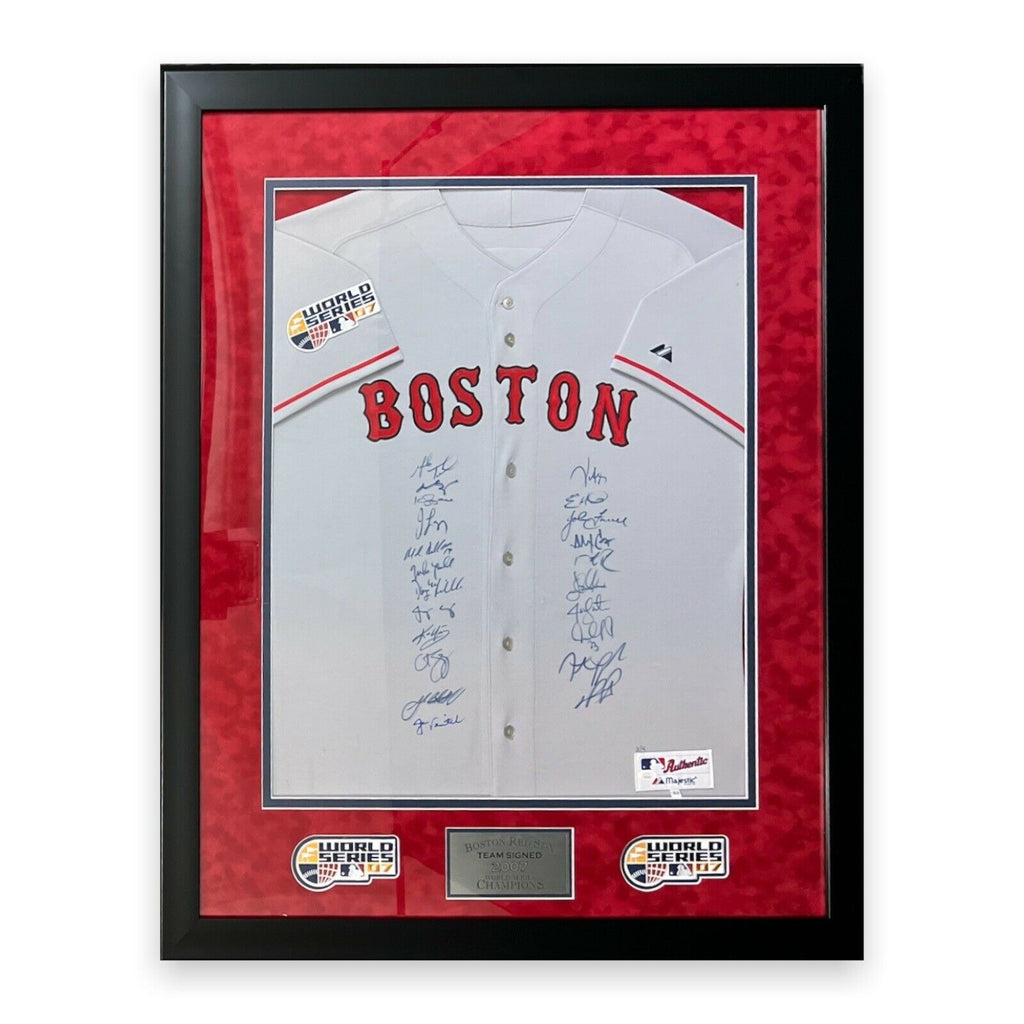This jersey custom framed to 36x45 has been personally hand-signed by the 2007 Boston Red Sox team100% Authentic Certificate of authenticity by JSA
