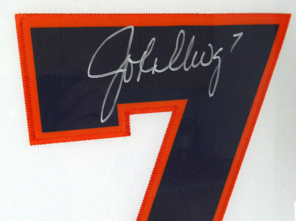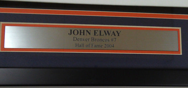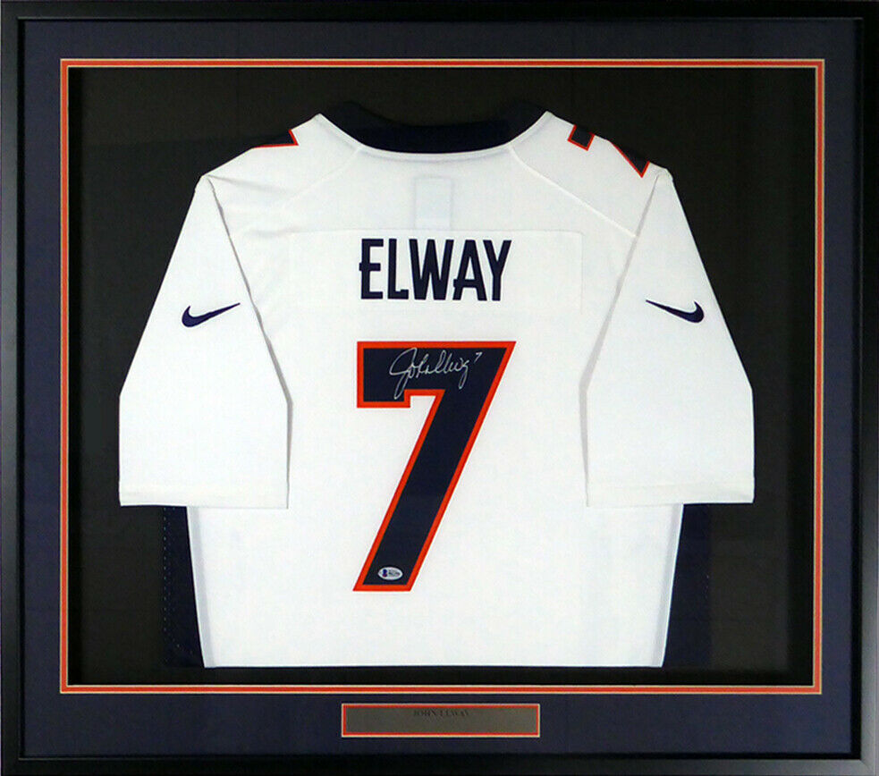 This is a Denver Broncos Nike Twill Jersey, approximately 31x36 with the frame, that has been hand signed by John Elway. This item has been certified authentic by Beckett Authentication (BAS) and comes with their serial numbered sticker and matching certificate of authenticity.