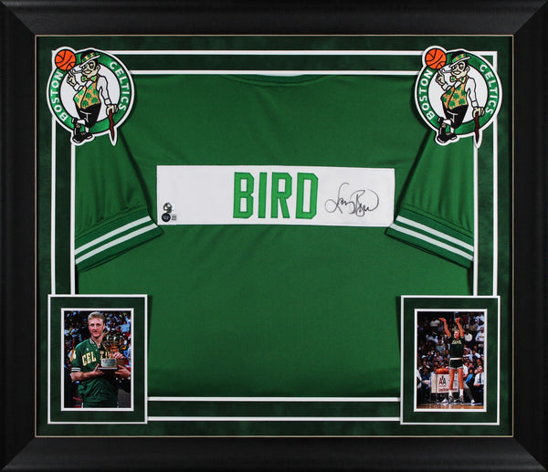 This Autographed 1987 Mitchell & Ness Hardwood Classics Authentic Framed Warm Up Jacket has been Personally Signed by Larry Bird of the Boston Celtics. This item is 100% Authentic to include a hologram by Beckett Authentication Services. This item will come with an affixed Beckett Authentication Services (BAS) authentication sticker, which includes a scannable QR code to verify authenticity. Please note that Beckett no longer provides serial-numbered COA cards, and the attached BAS sticker will serve as the complete authentication for this item. This is a BAS Witnessed Protection Program item which means a Beckett Authentication Service representative was present when this item was being signed. The authenticity can be verified on Beckett Authentication Services website.