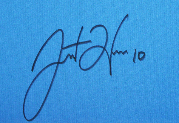 This Autographed Powder Blue Nike Game Framed Jersey has been Personally Signed by Justin Herbert of the Los Angeles Chargers. This item is 100% Authentic to includes a numbered hologram by Fanatics. We have multiples of this same item. While the photographs are representative of this item, the size, placement and strength of the signature may vary. Each item is hand signed, therefore, each autograph is unique. This item has been professionally framed to overall dimensions of approximately 32 x 37 inches. This jersey will be framed to order, it will take approximately 3-4 business days from purchase date for it to ship.