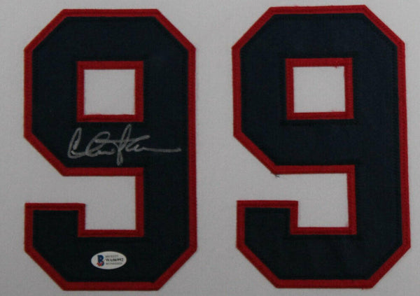 Charlie Sheen Signed Major League Indians Framed White Jersey BAS 26985 This is a professionally framed custom white size XL jersey that was personally autographed by Charlie Sheen. This includes a certificate of authenticity from Beckett Authentication Services (BAS) and Denver Autographs.