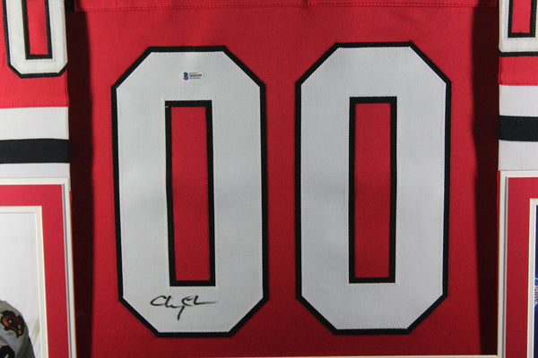 Chevy Chase Autographed/Signed Pro Style Framed Red XL Jersey Beckett 40129 The number in the listing title is just an inventory sku for our records and is not the authentication number. This is the exact item that you will receive so please see pictures for condition. This is a professionally framed Chicago Blackhawks Pro Style red jersey that was personally autographed by Chevy Chase. This jersey measures approximately 42" x 34" and Includes a certificate of authenticity from Beckett Authentication Services (BAS) and Denver Autographs.