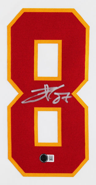 This Autographed White Nike Limited Framed Jersey has been Personally Signed by Travis Kelce of the Kansas City Chiefs. This item is 100% Authentic to include a hologram by Beckett Authentication Services. This item will come with an affixed Beckett Authentication Services (BAS) authentication sticker, which includes a scannable QR code to verify authenticity. Please note that Beckett no longer provides serial-numbered COA cards, and the attached BAS sticker will serve as the complete authentication for this item. This is a BAS Witnessed Protection Program item which means a Beckett Authentication Service representative was present when this item was being signed. We conducted an autograph signing with Travis Kelce where multiples of the same item were signed. While the photographs are representative of this item, the size, placement and strength of the signature may vary. Each item is hand signed, therefore, each autograph is unique. This item can be verified through BAS Witnessed. This item has been professionally framed to overall dimensions of approximately 32 x 37 inches. This jersey will be framed to order, it will take approximately 3-4 business days from purchase date for it to ship.