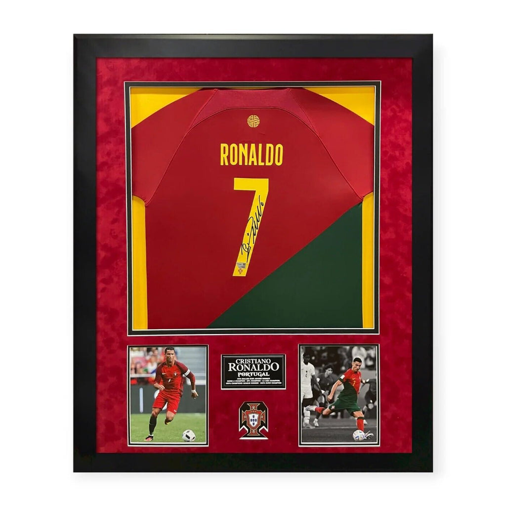 This Portugal jersey custom framed to 32x40 has been personally hand-signed by Cristiano Ronaldo 100% Authentic Certificate of authenticity by Fanaticsasgmemorabilia.com