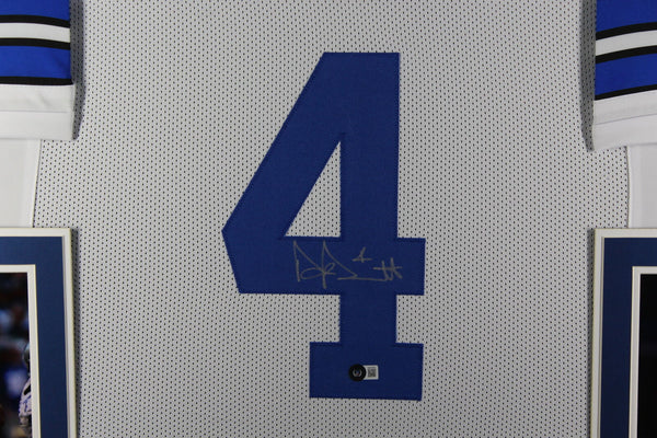 The number in the listing title is just an inventory sku for our records and is not the authentication number. The item pictured is the exact item you will receive please see photos for condition. This is a framed Pro Style white jersey with sewn on numbers that was personally autographed by Dak Prescott. Includes a certificate of authenticity from Beckett Authentication Services (BAS) and Denver Autographs.