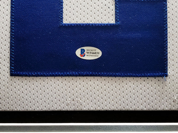 DALLAS COWBOYS EMMITT SMITH AUTOGRAPHED FRAMED WHITE JERSEY BECKETT BAS 202406