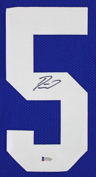 This Autographed Blue Pro Style Framed Jersey has been Personally Signed by Darius Leonard of the Indianapolis Colts. This item is 100% Authentic to include a Certificate of Authenticity (COA) / hologram by Beckett Authentication Services. This is a BAS Witnessed Protection Program item which means a Beckett Authentication Service representative was present when this item was being signed. This is a stock item. We conducted an autograph signing with Darius Leonard and we have several of these available. The one you will receive will be of equal quality to the one pictured. This item can be verified through BAS Witnessed. This item has been professionally framed to overall dimensions of approximately 32 x 37 inches. This is a X-Large sized, non-branded, custom-stitched Framed Jersey. These jerseys are framed to order, it takes approximately 3-4 business days for framing to be completed.
