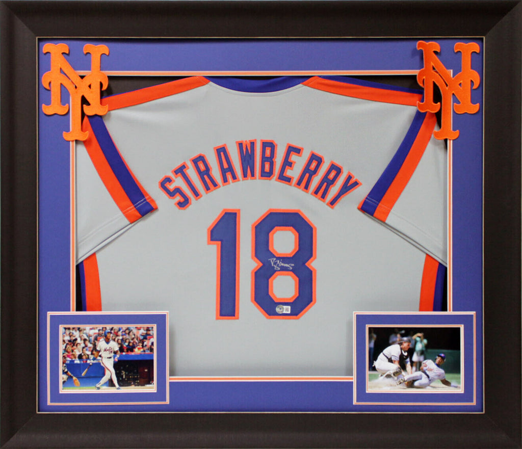 This Autographed Green Pro Style Framed Jersey has been Personally Signed by Daryl Strawberry of the New York Mets. This item is 100% Authentic to include a hologram by Beckett Authentication Services. This item will come with an affixed Beckett Authentication Services (BAS) authentication sticker, which includes a scannable QR code to verify authenticity. Please note that Beckett no longer provides serial-numbered COA cards, and the attached BAS sticker will serve as the complete authentication for this item. This is a BAS Witnessed Protection Program item which means a Beckett Authentication Service representative was present when this item was being signed. We have multiples of this same item. While the photographs are representative of this item, the size, placement and strength of the signature may vary. Each item is hand signed, therefore, each autograph is unique. This item has been professionally framed to overall dimensions of approximately 32 x 37 inches. This is a X-Large sized, non-branded, custom-stitched Framed Jersey. This jersey will be framed to order, it will take 3-4 days from purchase date for it to ship.