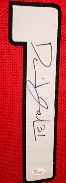 Custom frame measures approximately 35" x 43" in size and features a jersey which has been hand-signed in black felt-tip pen by David Johnson. The autograph includes an official James Spence Authentication (JSA) hologram and matching COA for authenticity purposes. The signing of this item was witnessed by JSA.Authentication: JSA COA