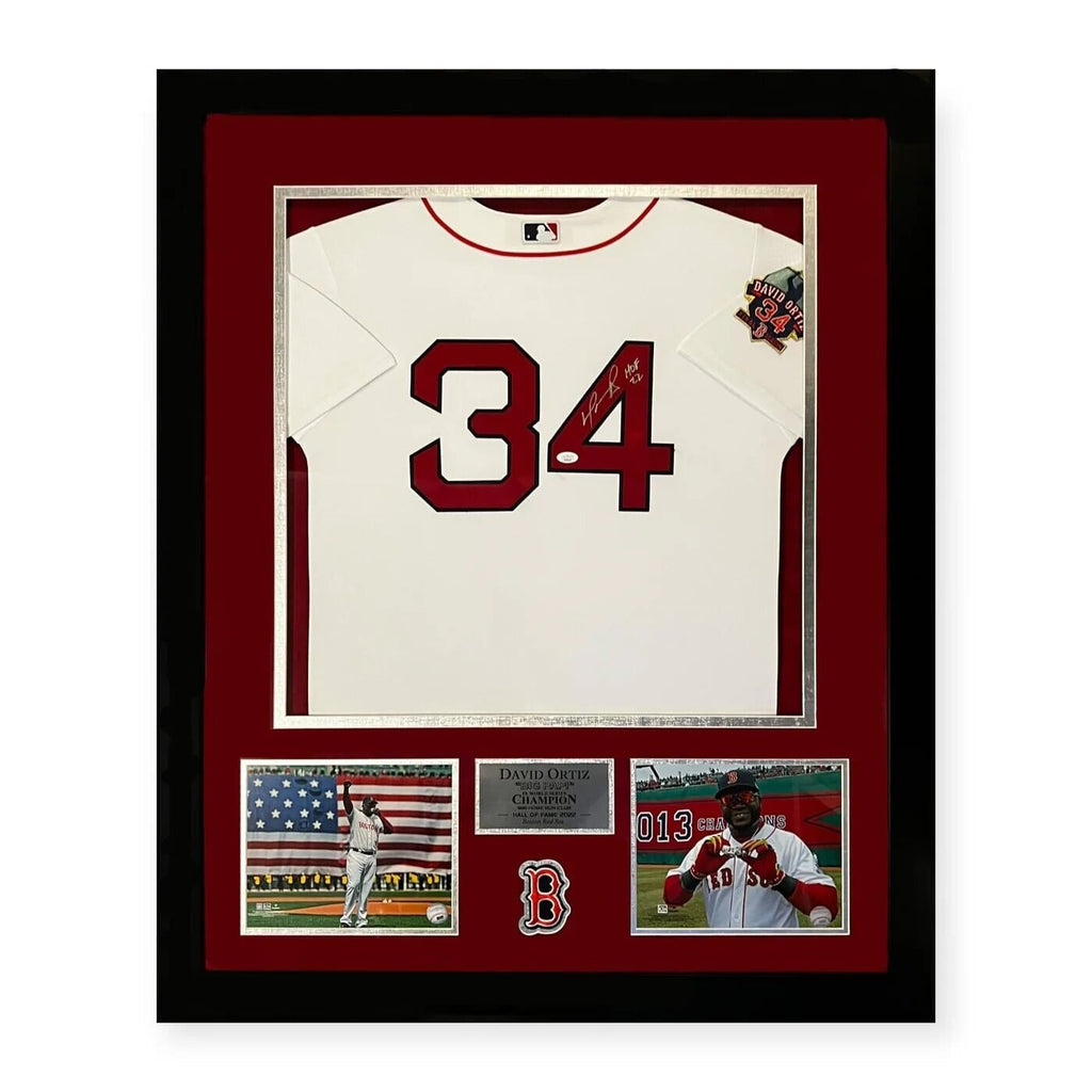 This jersey with "HOF 22" inscription custom framed to 32x40 has been personally hand-signed by David Ortiz of the Boston Red Sox.100% Authentic. Certificate of Authenticity by JSAExact location of signature may varyasgmemorabilia.com