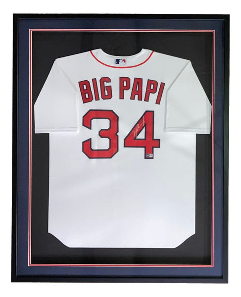 Featured is a David Ortiz signed Red Sox Nike baseball jersey. This jersey was hand signed by Ortiz and comes with the Beckett Witnessed hologram and certificate of authenticity. This jersey has been professionally framed and matted and is approximately 32x38. This jersey would make a great addition to any sports memorabilia collection! SPECIFICATIONS Autographed By: David Ortiz Team: Boston Red Sox Sport: Baseball Authentication: Beckett Grading Services