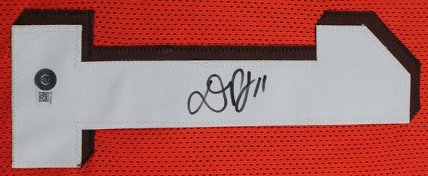 This Autographed Orange Pro Style Framed Jersey has been Personally Signed by Donovan Peoples-Jones of the Cleveland Browns. This item is 100% Authentic to include a hologram by Beckett Authentication Services. This item may come with the new Beckett Authentication hologram that has a scannable QR code rather than the traditional COA. If you would like to have a COA, you are welcome to reach out to Beckett for a printed certification once you receive your item. This is a BAS Witnessed Protection Program item which means a Beckett Authentication Service representative was present when this item was being signed. We conducted an autograph signing with Donovan Peoples-Jones where multiples of the same item were signed. While the photographs are representative of this item, the size, placement and strength of the signature may vary. Each item is hand signed, therefore, each autograph is unique. This item can be verified through BAS Witnessed. This item has been professionally framed to overall dimensions of approximately 32 x 37 inches. This is a X-Large sized, non-branded, custom-stitched Framed Jersey. This jersey will be framed to order, it will take 3-4 days from purchase date for it to ship.