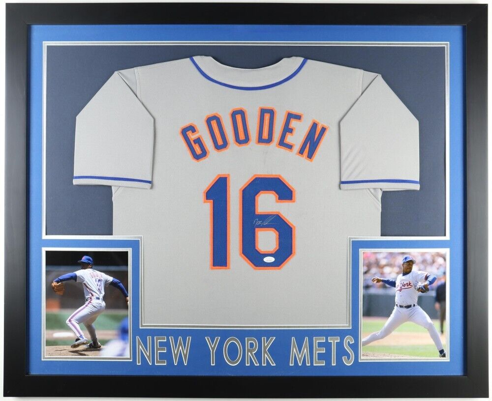 Custom frame measures approximately 35.5" x 44" in size and features a jersey hand-signed by Doc Gooden. The display also includes (2) photographs of Doc Gooden.The lot / autograph(s) includes an official James Spence Authentication (JSA) hologram for authenticity purposes. The signing of this item was witnessed by JSA.Authentication: JSA Hologram