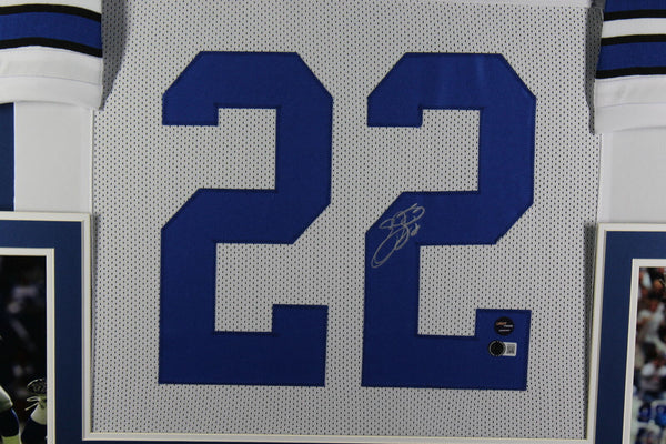The number in the listing title is just an inventory sku for our records and is not the authentication number. The item pictured is the exact item you will receive please see photos for condition. This is a framed Pro Style white jersey with sewn on numbers that was personally autographed by Emmitt Smith. Includes a certificate of authenticity from Beckett Authentication Services (BAS) and Denver Autographs.