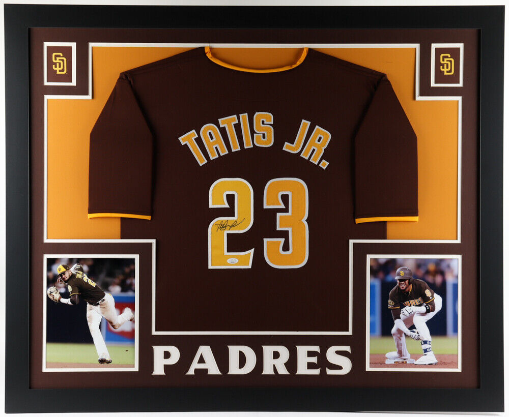Fernando Tatis Jr. Signed San Diego Padres 35"x 43" Framed Jersey (JSA) S.S.