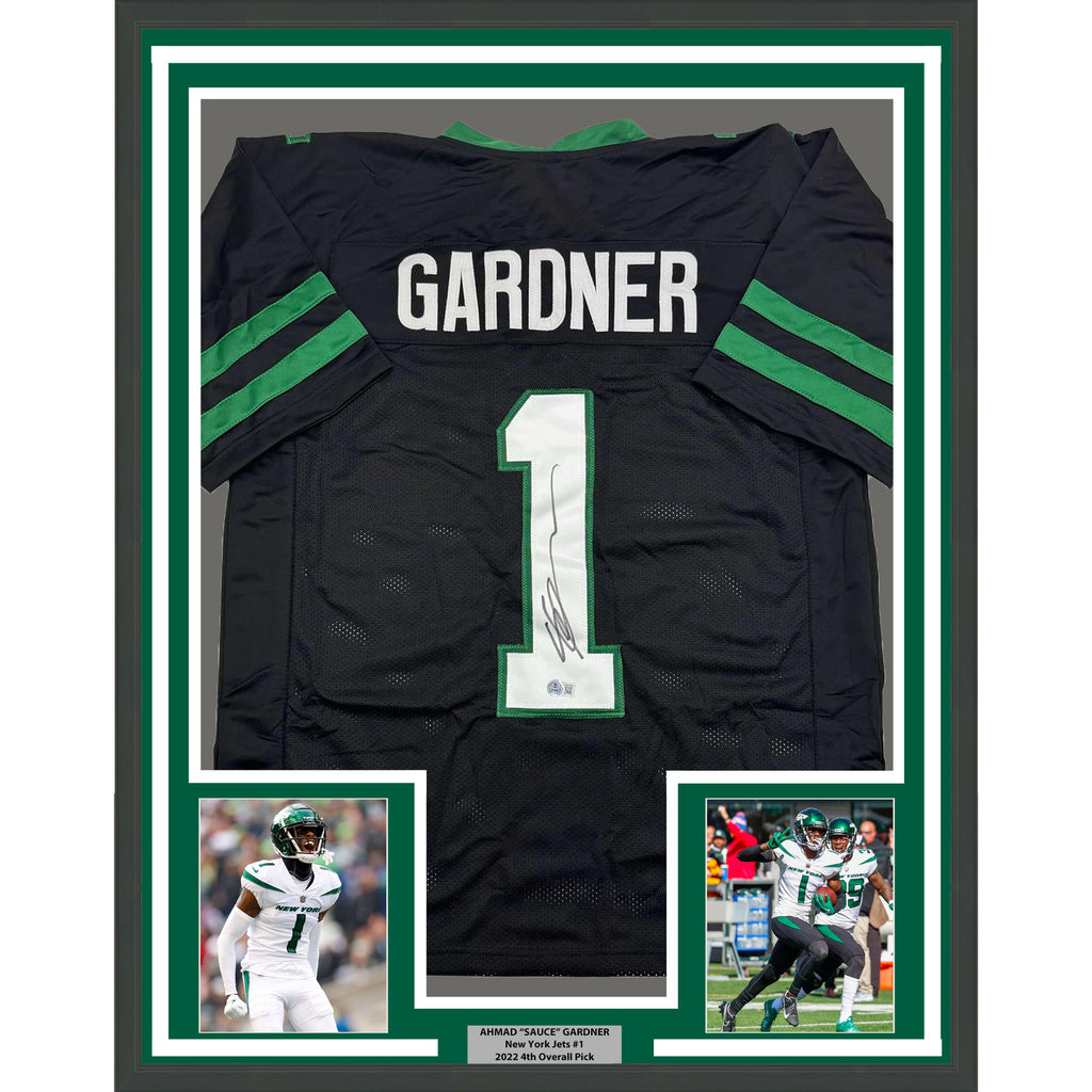 Framed Autographed/Signed Ahmad Sauce Gardner 35x39 Black Jersey Beckett BAS COA The item is professionally framed and matted with two 5x7 photos, measures 35x39 inches and is ready to be hung in your man cave! Photo and matting requests can be made.