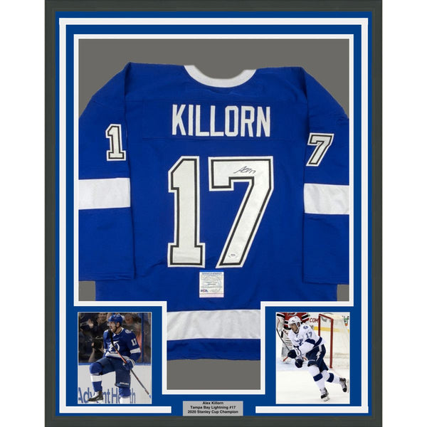FRAMED Autographed/Signed ALEX KILLORN 33x42 Tampa Bay Blue Jersey PSA/DNA COA The item is professionally framed & matted with two 8x10 photos, measures 33"x42" and is ready to be hung in your man cave! NOTE: COA card will be mounted on the back of the frame, not inside it on top of the jersey as seen in the picture.