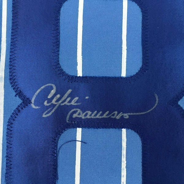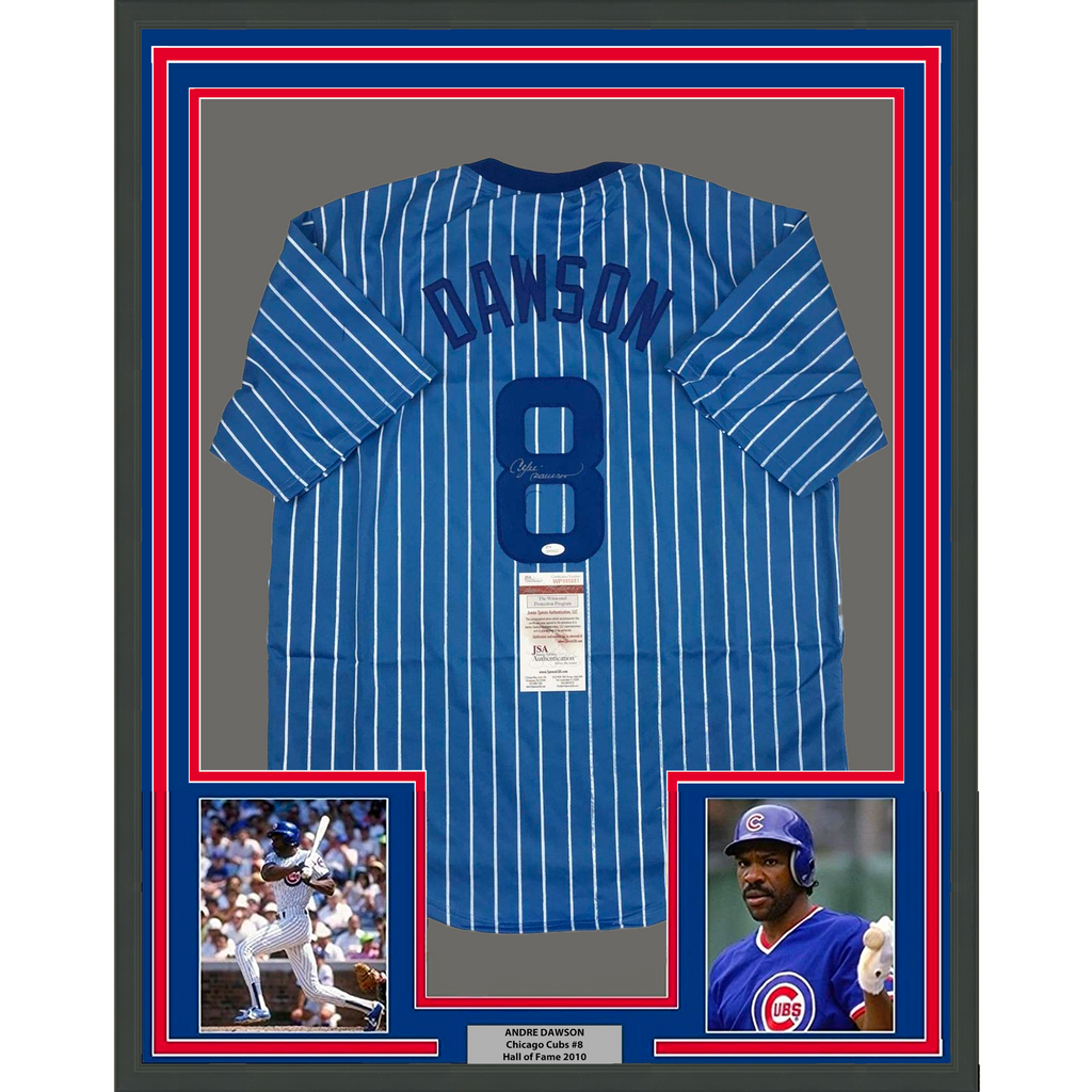 FRAMED Autographed/Signed ANDRE DAWSON 33x42 Blue Pinstripe Jersey JSA COA Auto
