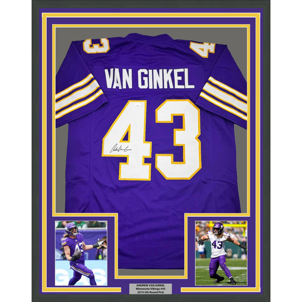 Framed Autographed/Signed Andrew Van Ginkel 35x39 Purple Jersey JSA COA #2 The item is professionally framed and matted with two 5x7 photos, measures 35x39 inches and is ready to be hung in your man cave! Photo and matting requests can be made.