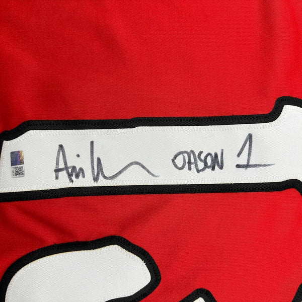Framed Autographed/Signed Ari Lehman 33x42 Red Movie Jersey Steiner CX COA The item is professionally framed and matted with two 5x7 photos, measures 35 inches by 39 inches and is ready to be hung in your man cave! Photo and matting requests can be made.