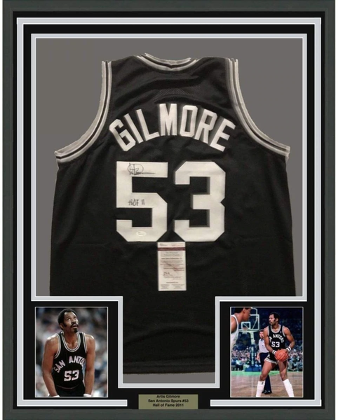 Framed Autographed/Signed Artis Gilmore HOF 11 33x42 Black Jersey JSA COA The item is professionally framed and matted with two 5x7 photos, measures 35x39 inches and is ready to be hung in your man cave! Photo and matting requests can be made.