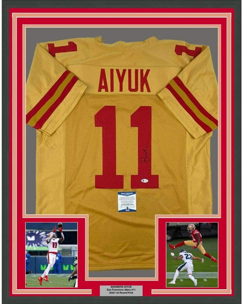 FRAMED Autographed/Signed BRANDON AIYUK 33x42 San Francisco Gold Jersey BAS COA