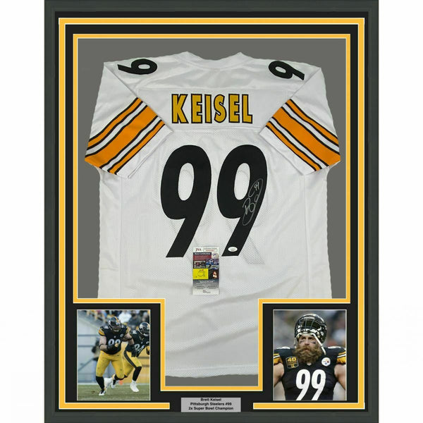 FRAMED Autographed/Signed BRETT KEISEL 33x42 Pittsburgh White Jersey JSA COA The item is professionally framed & matted with two 8x10 photos, measures 33"x42" and is ready to be hung in your man cave! NOTE: COA card will be mounted on the back of the frame, not inside it on top of the jersey as seen in the picture. Please allow up to 5 business days for the item to be framed, packaged safely, and picked up by UPS. Photo and matting requests can be made.