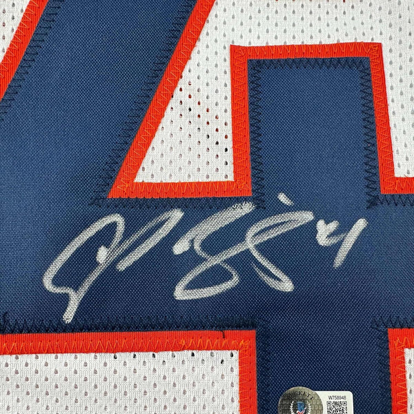 Framed Autographed/Signed Champ Bailey 33x42 Denver White Jersey Beckett BAS COA The item is professionally framed and matted with two 5x7 photos, measures 35 inches by 39 inches and is ready to be hung in your man cave! Photo and matting requests can be made.