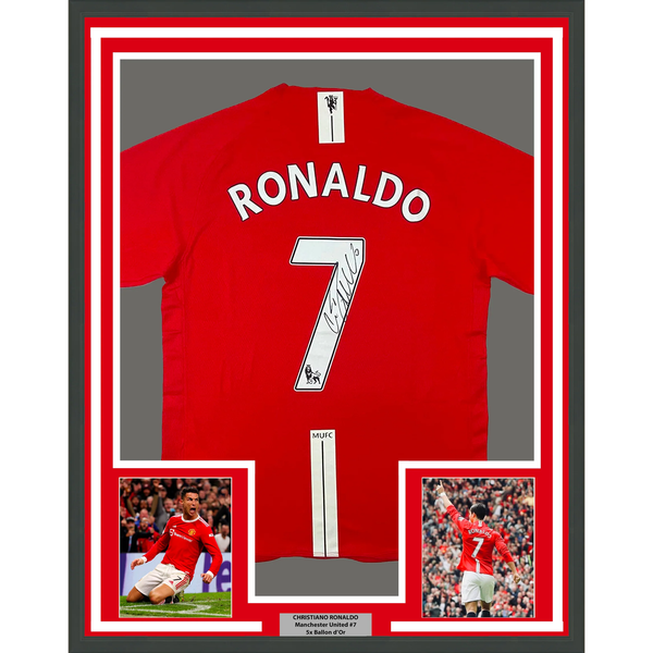Framed Autographed/Signed Cristiano Ronaldo 33x42 Red 2008 Jersey BAS COA/LOA