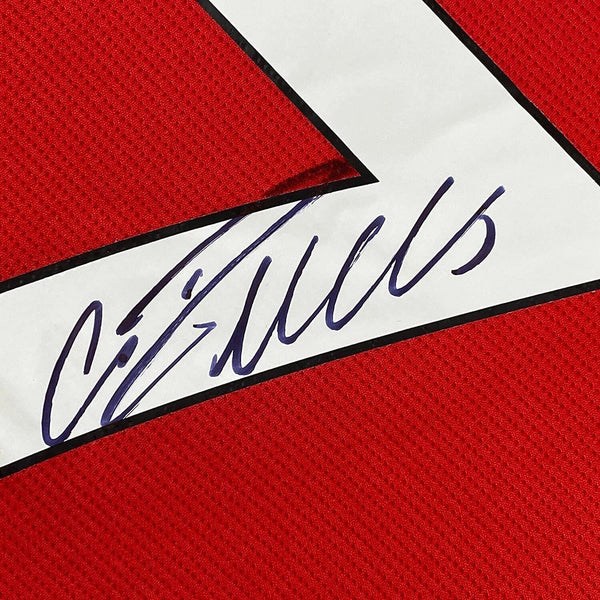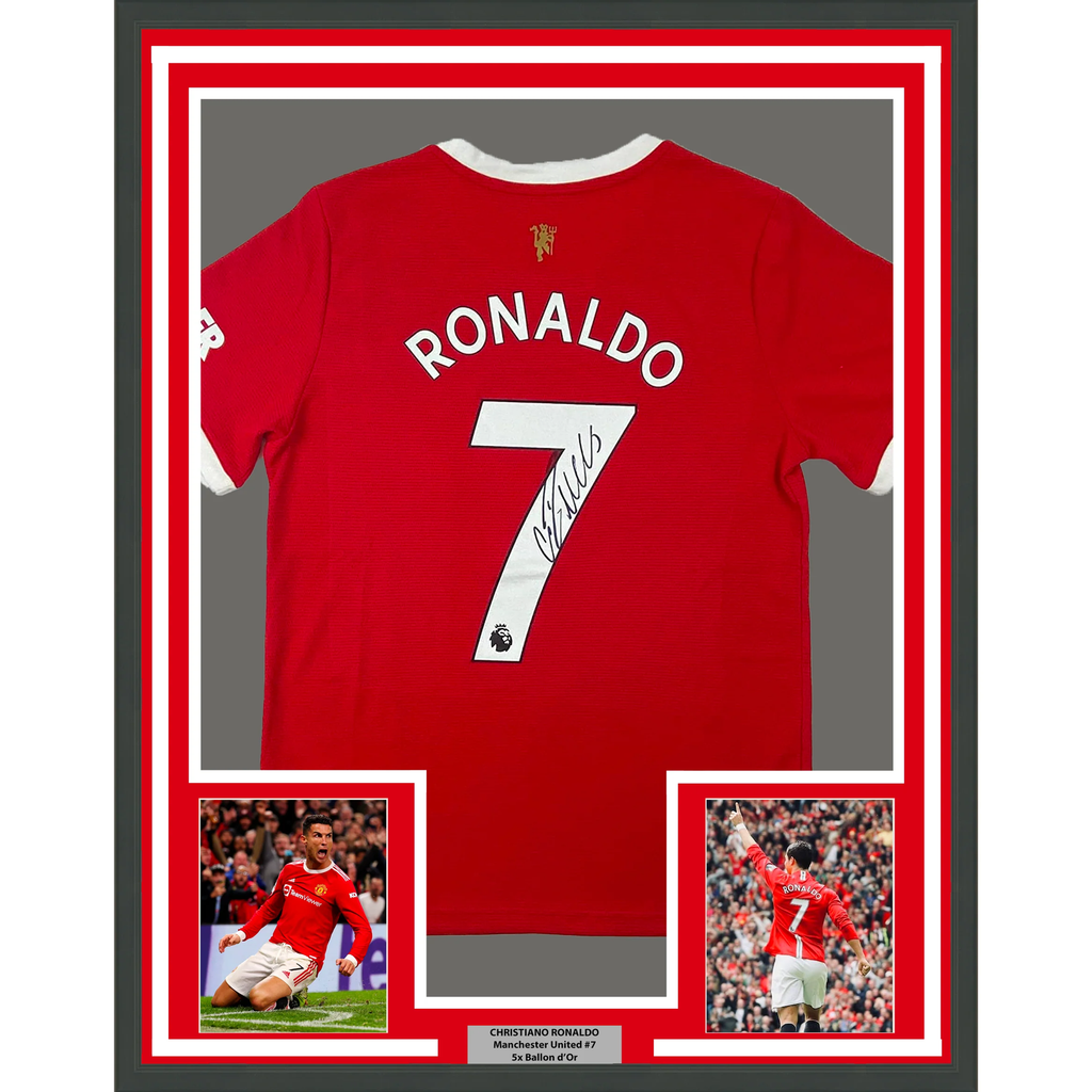 Framed Autographed/Signed Cristiano Ronaldo 33x42 Red Current Jersey BAS COA/LOA The item is professionally framed and matted with two 5x7 photos, measures 35x39 inches and is ready to be hung in your man cave! Photo and matting requests can be made.