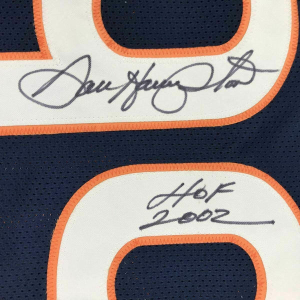 Framed Autographed/Signed Dan Hampton HOF 2002 33x42 Chicago Blue Jersey JSA COA