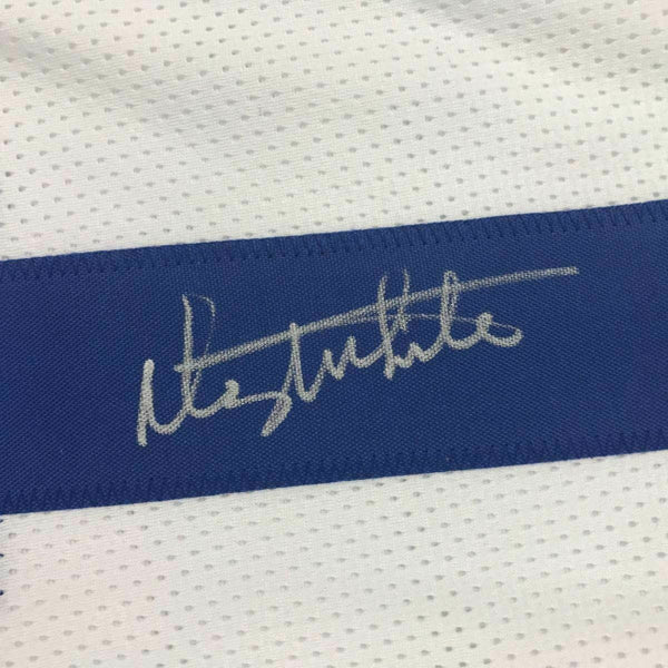 FRAMED Autographed/Signed DANNY WHITE 33x42 Dallas White Jersey JSA COA Auto The item is professionally framed and matted with two 8x10 photos, measures 33x42 inches and is ready to be hung in your man cave! NOTE: COA card will be mounted on the back of the frame, not inside it on top of the jersey as seen in the picture.