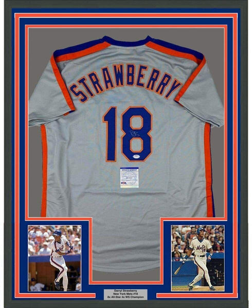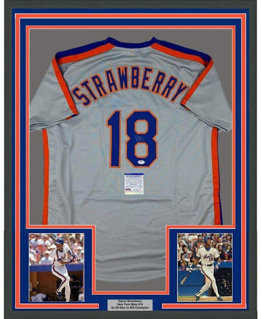 Framed Autographed/Signed Darryl Strawberry 35x39 New York Grey Jersey PSA COA The item is professionally framed and matted with two 5x7 photos, measures 35 inches by 39 inches and is ready to be hung in your man cave! Photo and matting requests can be made.