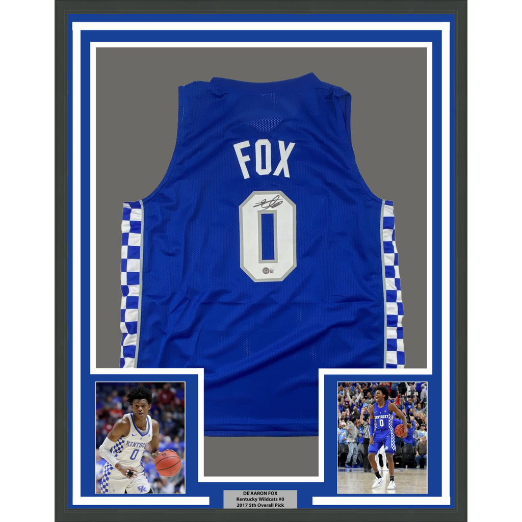 FRAMED Autographed/Signed DE'AARON FOX 33x42 Kentucky Blue Jersey BAS COA