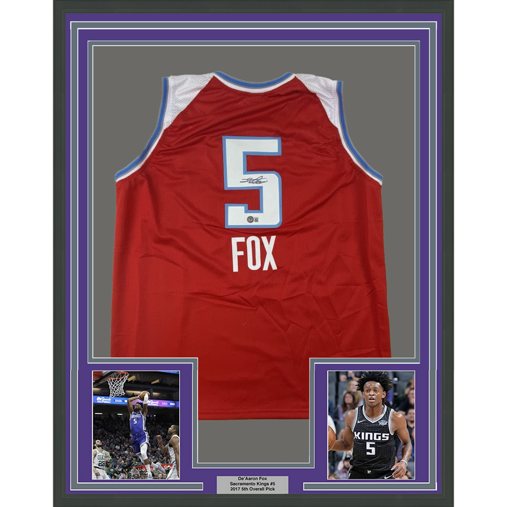 FRAMED Autographed/Signed DE'AARON FOX 33x42 Sacramento Red City Jersey BAS COA