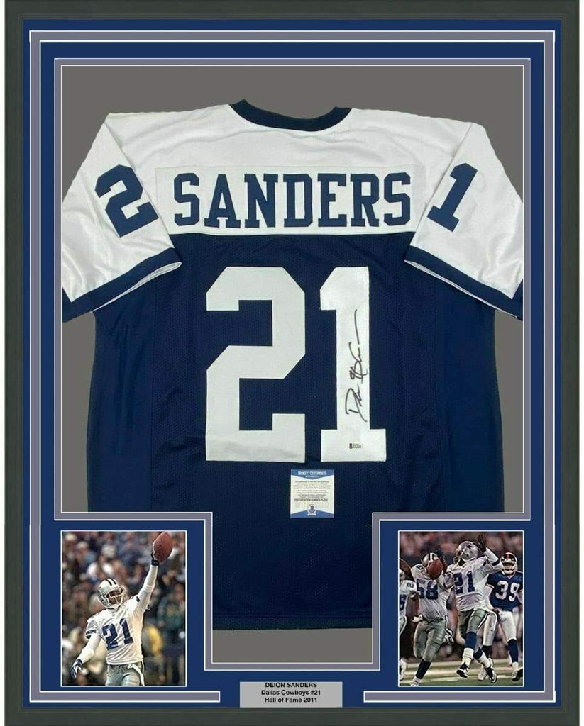 Framed Autographed/Signed Deion Sanders 33x42 Dallas TG Jersey Beckett BAS COA