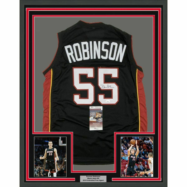 FRAMED Autographed/Signed DUNCAN ROBINSON 33x42 Miami Black Jersey JSA COA Auto The item is professionally framed & matted with two 8x10 photos, measures 33"x42" and is ready to be hung in your man cave! NOTE: COA card will be mounted on the back of the frame, not inside it on top of the jersey as seen in the picture. Please allow up to 5 business days for the item to be framed, packaged safely, and picked up by UPS. Photo and matting requests can be made.