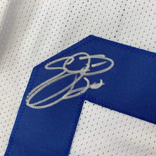 Framed Autographed/Signed Emmitt Smith 35x39 Dallas White Jersey JSA COA The item is professionally framed and matted with two 5x7 photos, measures 35x39 inches and is ready to be hung in your man cave! Photo and matting requests can be made.