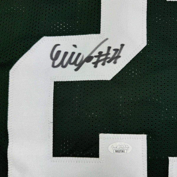 Framed Autographed/Signed Eric Stokes 35x39 Green Bay Green Jersey JSA COA The item is professionally framed and matted with two 5x7 photos, measures 35x39 inches and is ready to be hung in your man cave! Photo and matting requests can be made.