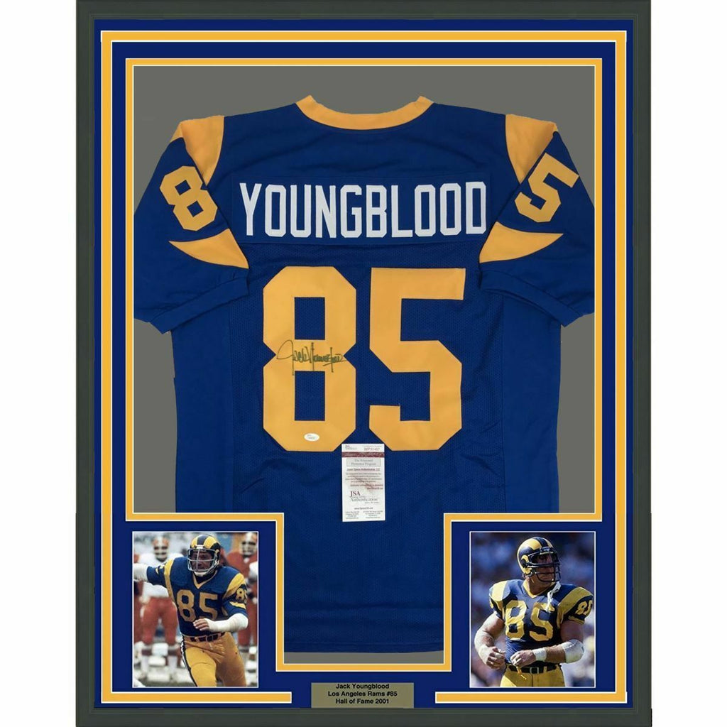 FRAMED Autographed/Signed JACK YOUNGBLOOD 33x42 Los Angeles Blue Jersey JSA COA The item is professionally framed & matted with two 8x10 photos, measures 33"x42" and is ready to be hung in your man cave! NOTE: COA card will be mounted on the back of the frame, not inside it on top of the jersey as seen in the picture. Please allow up to 5 business days for the item to be framed, packaged safely, and picked up by FedEx. Photo and matting requests can be made.