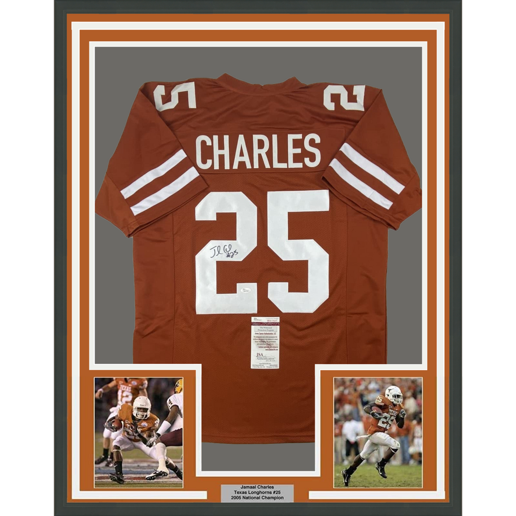 FRAMED Autographed/Signed JAMAAL CHARLES 33x42 Texas Orange College Football Jer