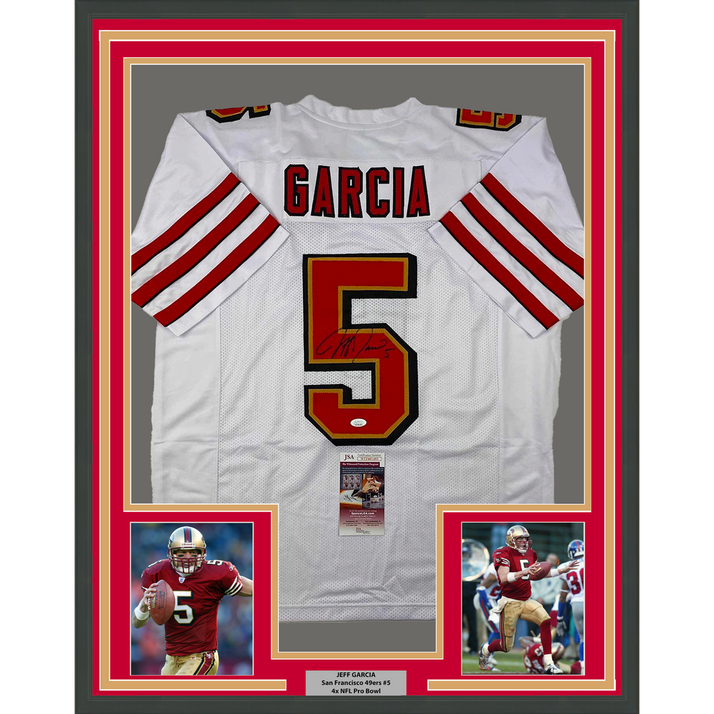 Framed Autographed/Signed Jeff Garcia 33x42 San Francisco White Jersey JSA COA
