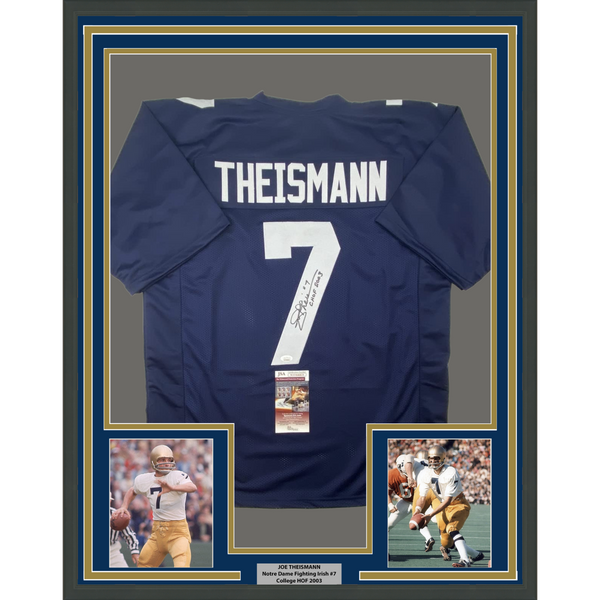 FRAMED Autographed/Signed JOE THEISMANN 33x42 Notre Dame College Jersey JSA COA