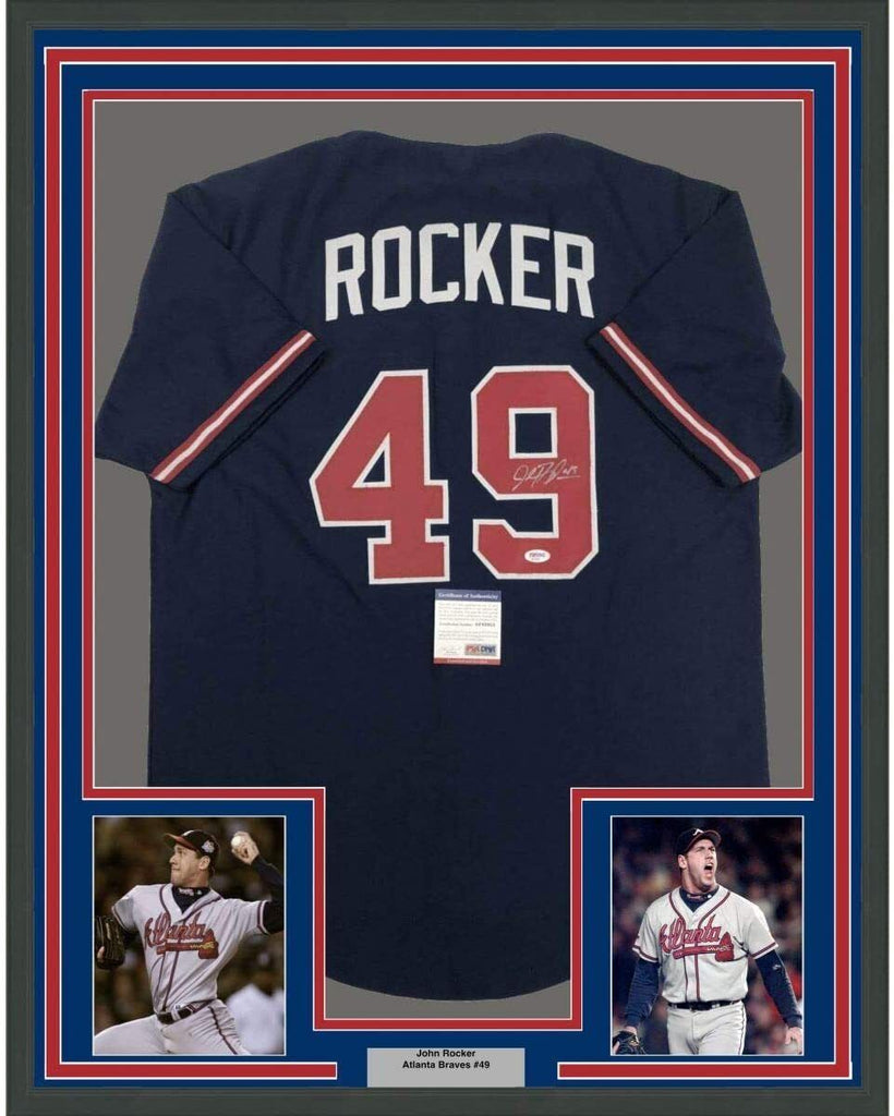 Framed Autographed/Signed John Rocker 35x39 Atlanta Blue Jersey PSA/DNA COA The item is professionally framed and matted with two 5x7 photos, measures 35 inches by 39 inches and is ready to be hung in your man cave! Photo and matting requests can be made.