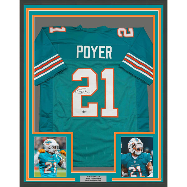 Framed Autographed/Signed Jordan Poyer 35x39 Miami Teal Jersey Beckett BAS COA The item is professionally framed and matted with two 5x7 photos, measures 35x39 inches and is ready to be hung in your man cave! Photo and matting requests can be made.