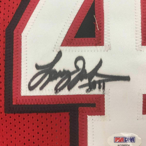 FRAMED Autographed/Signed LARRY JOHNSON 33x42 UNLV Red Jersey PSA/DNA COA Auto The item is professionally framed & matted with two 8x10 photos, measures 33"x42" and is ready to be hung in your man cave! NOTE: COA card will be mounted on the back of the frame, not inside it on top of the jersey as seen in the picture.
