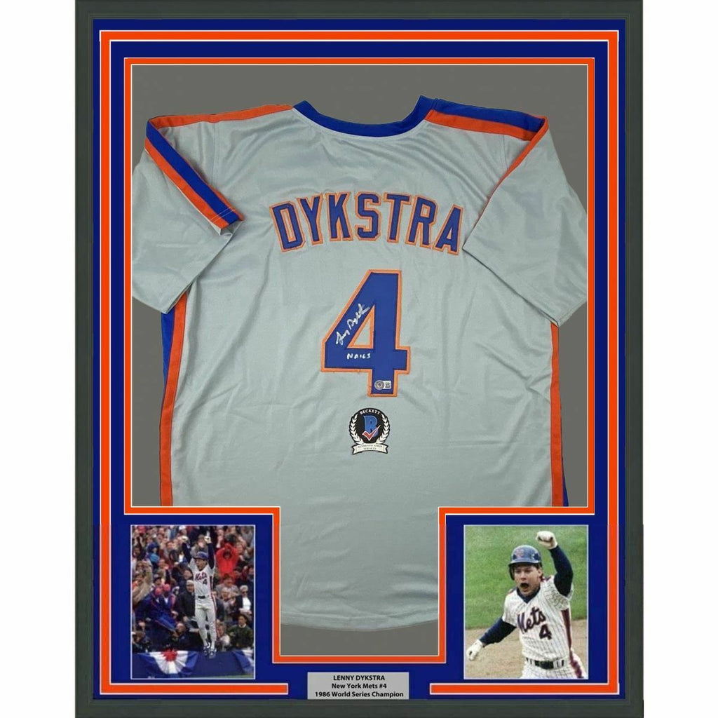 FRAMED Autographed/Signed LENNY DYKSTRA Nails 33x42 Grey Jersey Beckett BAS COA The item is professionally framed & matted with two 8x10 photos, measures 33"x42" and is ready to be hung in your man cave! NOTE: COA card will be mounted on the back of the frame, not inside it on top of the jersey as seen in the picture. Please allow up to 5 business days for the item to be framed, packaged safely, and picked up by UPS. Photo and matting requests can be made.