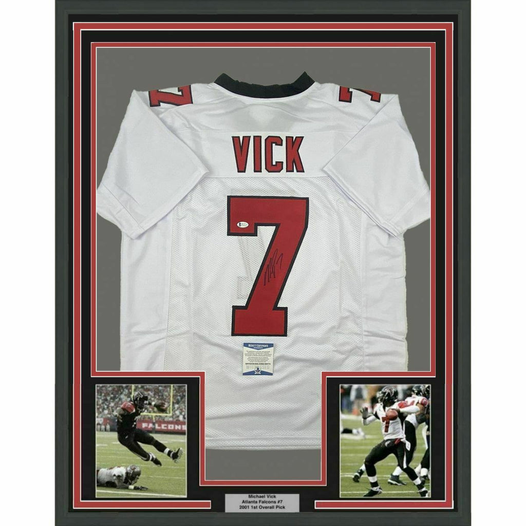FRAMED Autographed/Signed MICHAEL MIKE VICK 33x42 Retro White Jersey BAS COA The item is professionally framed & matted with two 8x10 photos, measures 33"x42" and is ready to be hung in your man cave! NOTE: COA card will be mounted on the back of the frame, not inside it on top of the jersey as seen in the picture. Please allow up to 5 business days for the item to be framed, packaged safely, and picked up by UPS. Photo and matting requests can be made.