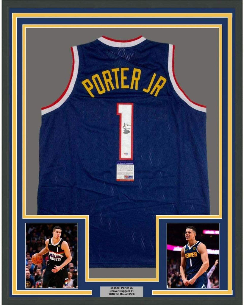 Framed Autographed/Signed Michael Porter Jr. 33x42 Denver Blue Jersey PSA COA The item is professionally framed & matted with two 8x10 photos, measures 33"x42" and is ready to be hung in your man cave! NOTE: COA card will be mounted on the back of the frame, not inside it on top of the jersey as seen in the picture.