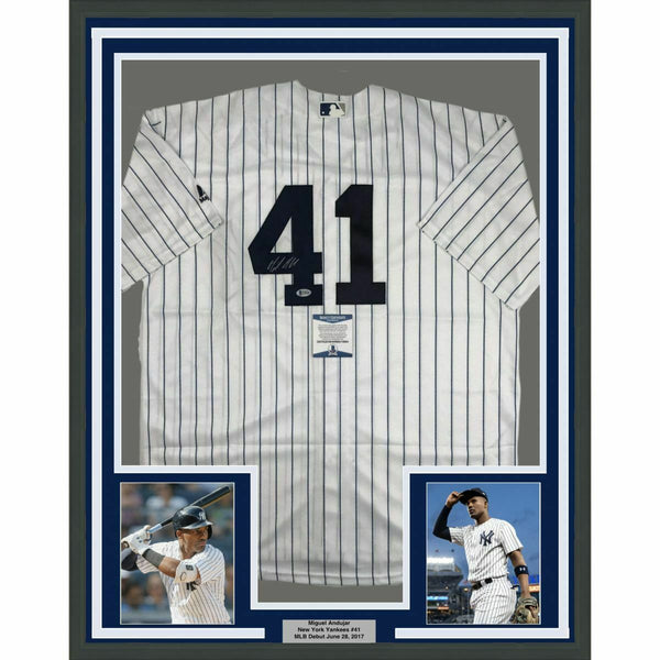 FRAMED Autographed/Signed MIGUEL ANDUJAR 33x42 New York Majestic Jersey BAS COA The item is professionally framed & matted with two 8x10 photos, measures 33"x42" and is ready to be hung in your man cave! NOTE: COA card will be mounted on the back of the frame, not inside it on top of the jersey as seen in the picture. Please allow up to 5 business days for the item to be framed, packaged safely, and picked up by USPS. Photo and matting requests can be made.
